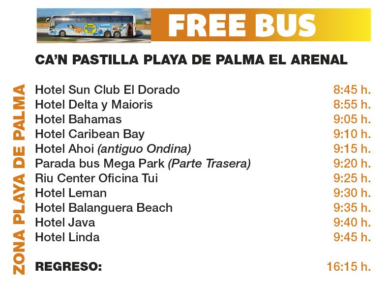 Si te encuentras en las zonas de Ca’n Pastilla, Playa de Palma y El Arenal podrás venir a Marineland Mallorca con transporte incluido.